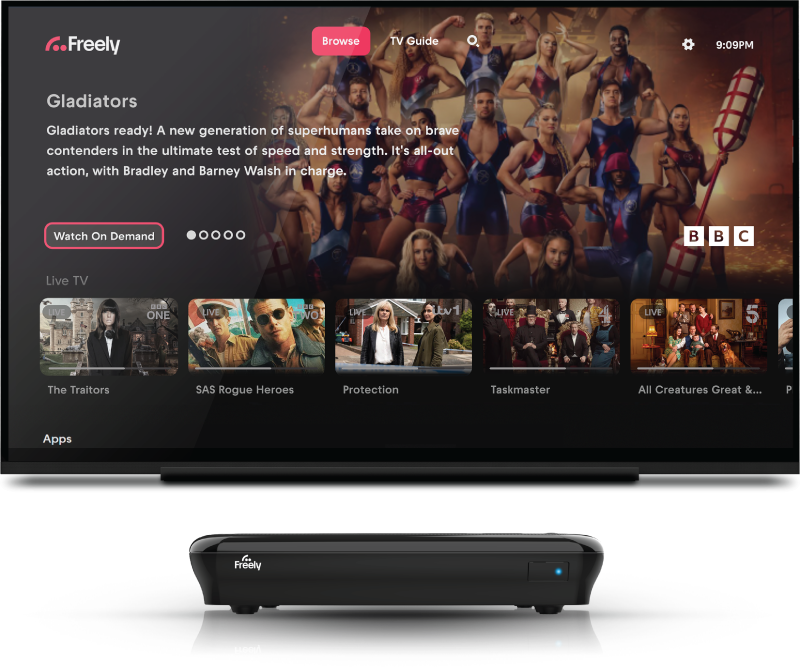 Freely gives you access to 60+ live TV channels and 75,000+ hours of on-demand content, including services from the UK’s major broadcasters.