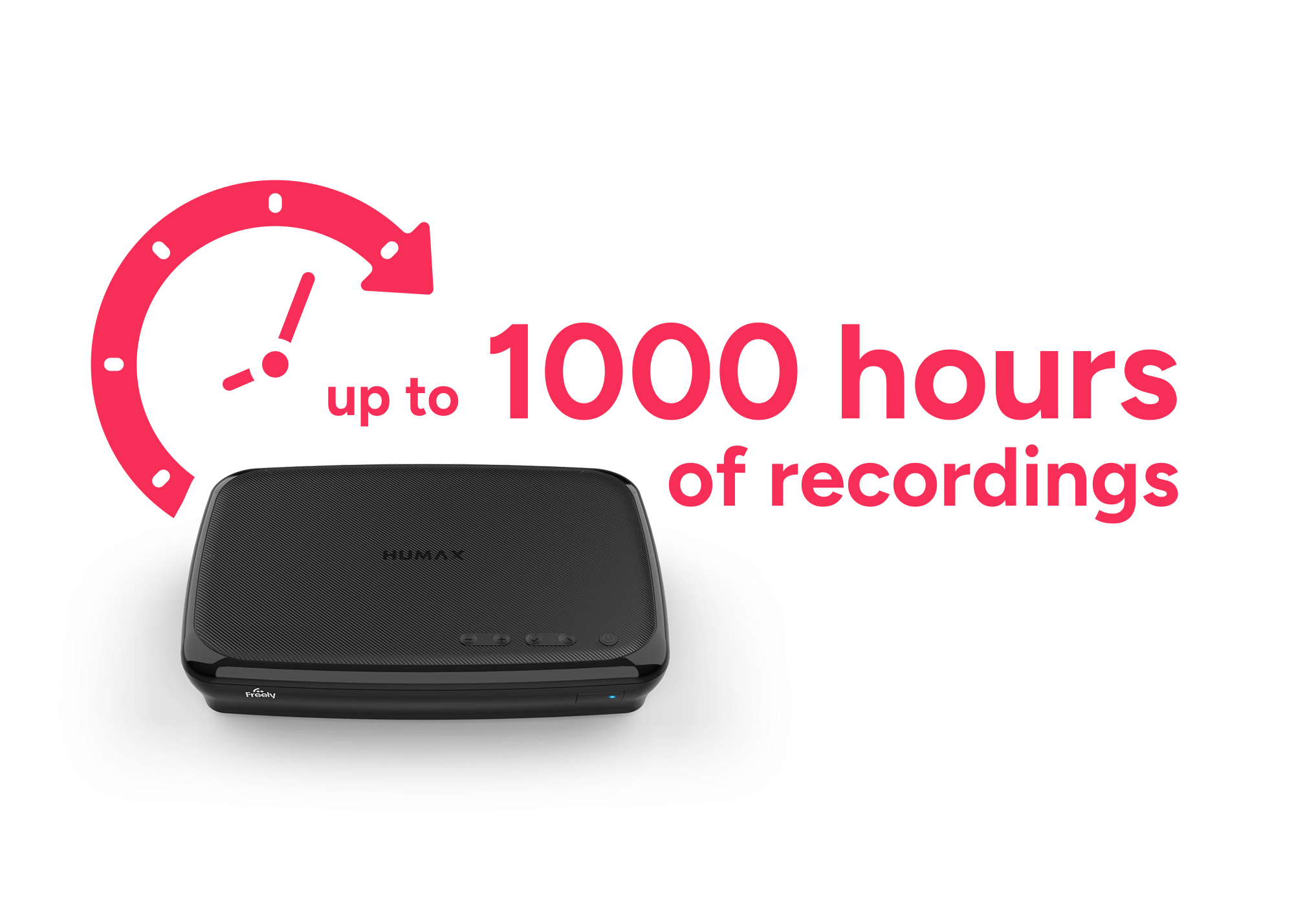 with 2TB of built-in storage you can Store up to 1,000 hours of recordings in one organised library.
